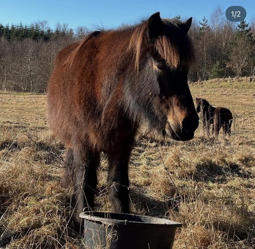 Sidste vinter (2023-2024) havde jeg svært ved at holde hende i god huld. Fodringen her på stedet er: Wrap ad libitum, og avlshopperne bliver taget ind og får tilskudsfoder. Det kan du læse mere om her.
